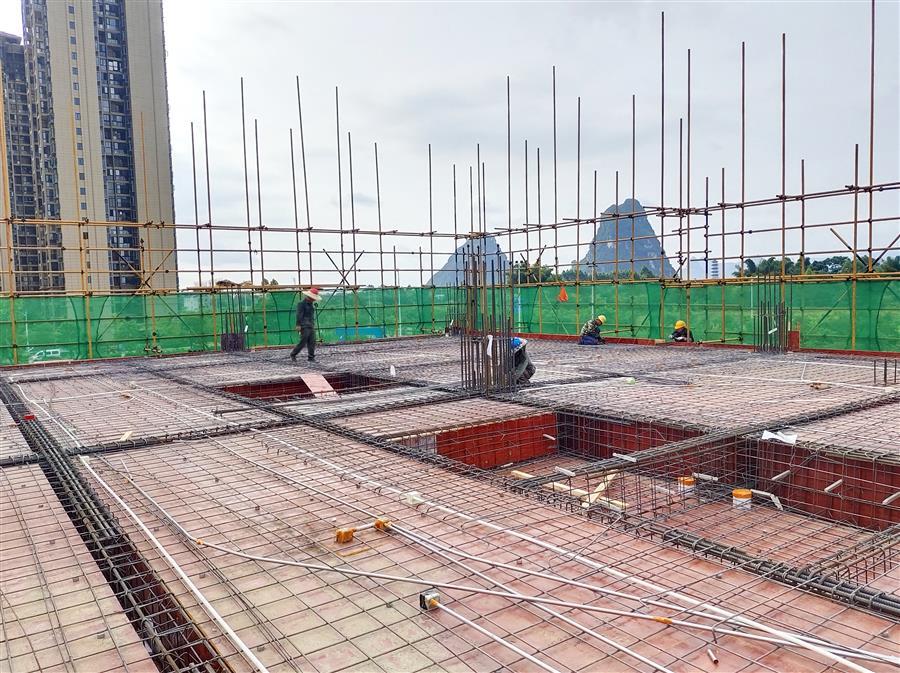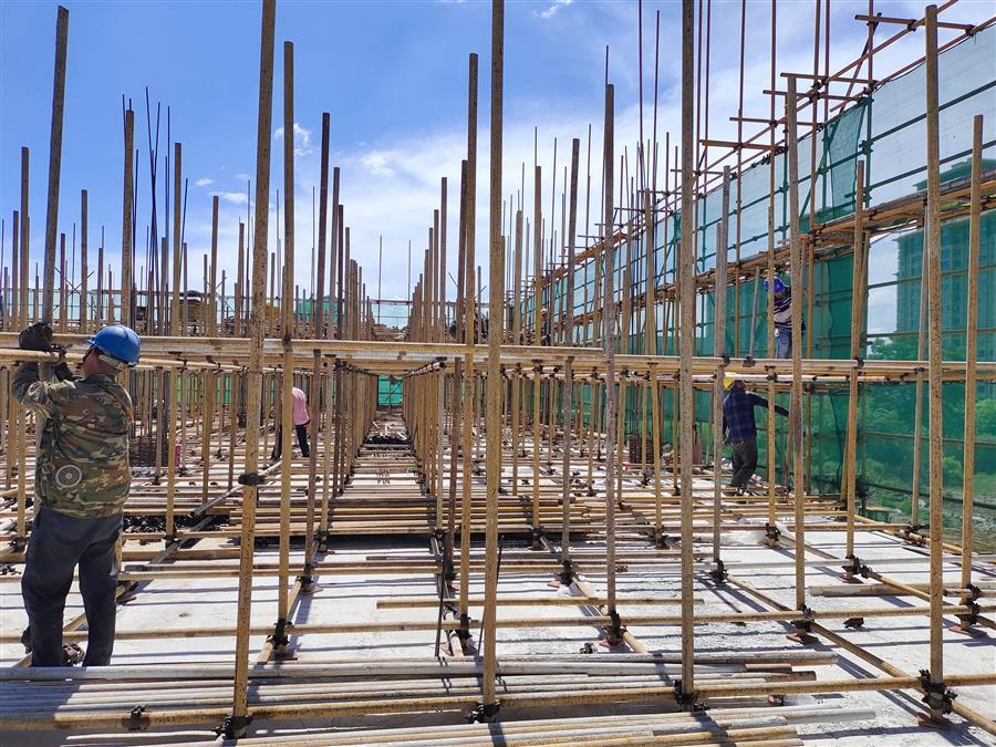 在項目現(xiàn)場,每天有50多名工人頂著高溫,相互配合,有條不紊地進行鋼筋加工、綁扎鋼筋、混凝土澆筑等工作。為了趕工期,他們時常加班加點工作到深夜,同時還認(rèn)真按照工藝標(biāo)準(zhǔn)逐條逐項落實每一項細(xì)節(jié),嚴(yán)把工藝質(zhì)量。