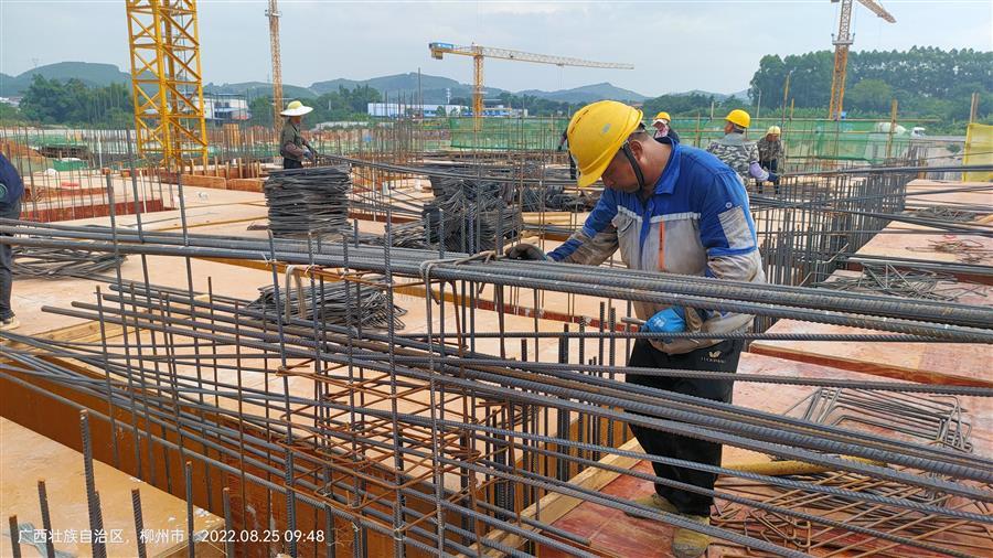 為了確保按時間節(jié)點完成工作量,項目部想方設(shè)法克服各種困難,在做好疫情防控及防暑降溫保障措施工作的同時,認真抓好施工現(xiàn)場的安全和質(zhì)量管理工作。當(dāng)前,項目每天有200多人的鋼筋班組、木工班組、外架班組、滿堂架班組和混凝土班組在現(xiàn)場有序進行安裝模板、搭設(shè)支架、綁扎鋼筋等工作。