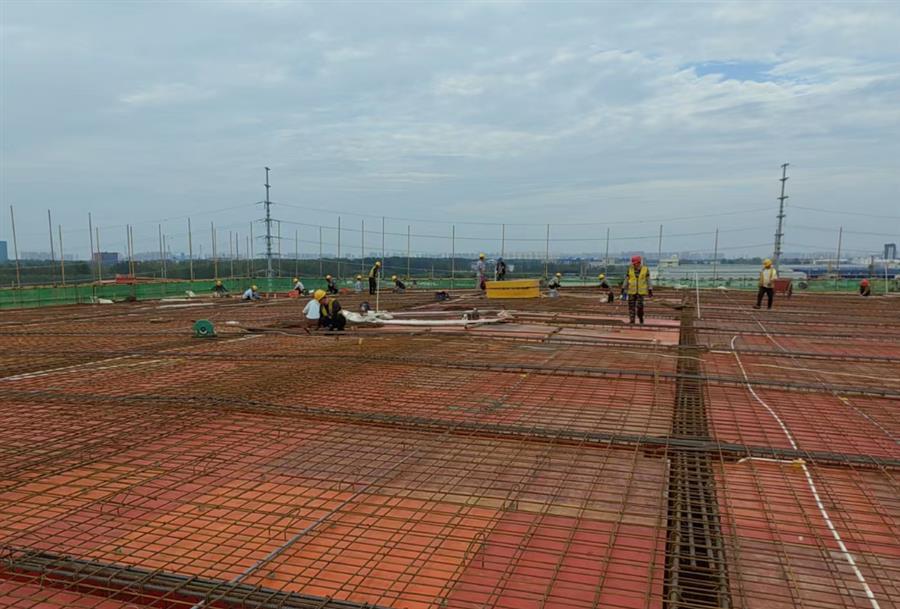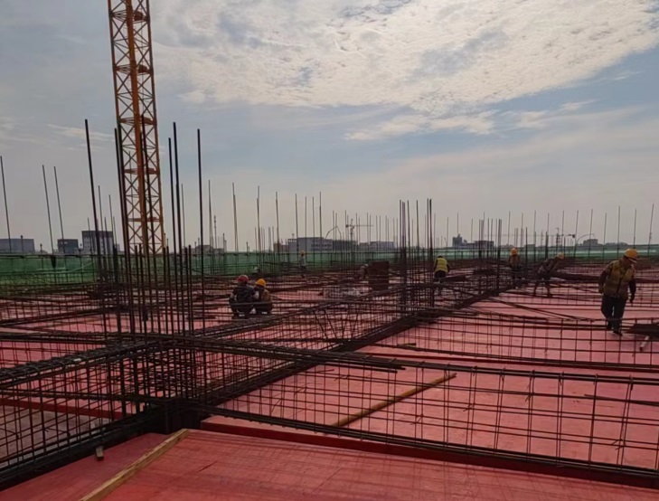 近日,在冶建公司桂鴻分公司承建的湖北荊州復(fù)新產(chǎn)業(yè)園一期項目現(xiàn)場,施工機械設(shè)備、運輸車輛有序作業(yè),幾十名建設(shè)者不懼高溫,堅守一線辛勤工作,各個工種密切配合,加緊推進主體施工,現(xiàn)場一片熱火朝天的繁忙景象。
