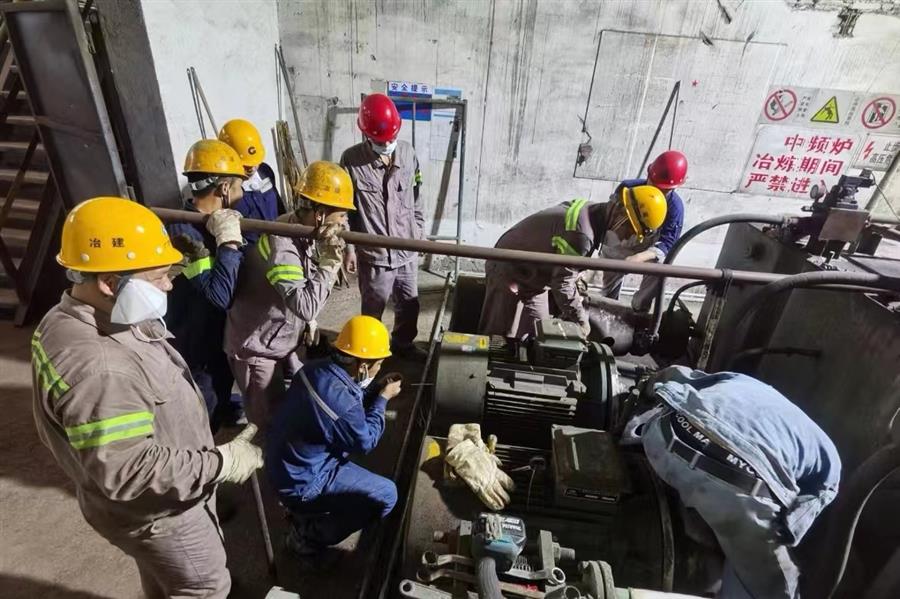 廣西北海市鐵山港區(qū)二煉鋼輔助設(shè)備維保年度承包項(xiàng)目,十余名工人在二煉鋼中頻爐液壓站進(jìn)行電機(jī)搶修,加班完成拆除更換任務(wù)。