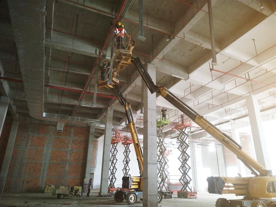 雨天巧干、晴天大干。項(xiàng)目部制定周密、科學(xué)的施工計(jì)劃,提前做好應(yīng)急預(yù)案,每天根據(jù)天氣變化對工作時序、應(yīng)對措施、安全保障等情況進(jìn)行逐一落實(shí),充分利用好天氣窗口期,因時制宜,在保障安全作業(yè)的前提下,推進(jìn)穿插施工,盡一切可能搶抓進(jìn)度,將攻堅(jiān)再加速。目前,各樓棟水電消防完成90%,外墻膩?zhàn)雍屯鈮ζ崾┕ね瓿蛇^半,窗玻璃安裝完成60%,內(nèi)墻膩?zhàn)油瓿?0%;生產(chǎn)車間真石漆施工完成60%,49-61軸鋁板幕墻安裝完成15%,49-61軸二層金剛砂地坪完成30%,屋面卷材防水完成90%,屋面防水砼保護(hù)層完成60%;宿舍樓外墻裝飾線條完成80%,綜合樓外墻裝飾線條完成70%;室外管網(wǎng)路基施工完成40%。項(xiàng)目累計(jì)完成施工產(chǎn)值4.2億元,完成合同造價的82%。
