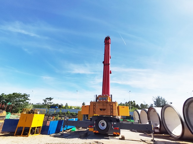 7月13日,冶建公司第三分公司承建的海口市觀瀾湖北區(qū)區(qū)外排水工程(PG3 線)施工現(xiàn)場,一臺(tái)長6米、外徑3.6米,重95噸 的超徑巖石頂管掘進(jìn)機(jī)在起重機(jī)的牽引下精準(zhǔn)進(jìn)入到始發(fā)井的指定位置,標(biāo)志著項(xiàng)目建設(shè)邁入更為高效、有序的軌道。