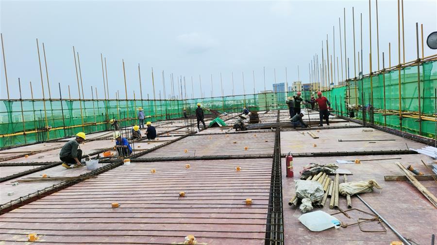 中秋將至,天氣依然炎熱。冶建公司桂海分公司承建的中國移動廣西分公司南寧武鳴區(qū)分公司生產調度用房工程項目施工現場一派熱火朝天的景象,建設者們各司其職,切割鋼筋、搬運材料、綁扎樓面鋼筋等,全力沖刺工程建設節(jié)點。
