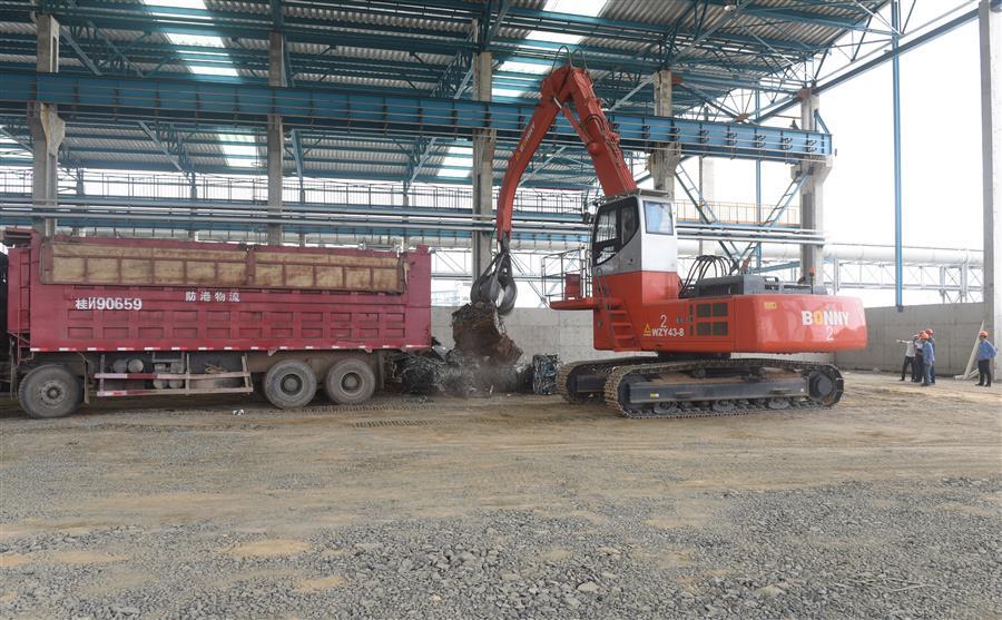 儀式上,3000噸一類沖壓片包塊廢鋼在廣西鋼鐵1萬噸碼頭卸船,隨后順利進入設(shè)備安裝分公司承建的防城港鋼鐵基地項目(一期)廢鋼處理系統(tǒng)金屬材料加工配送中心廠房及公輔設(shè)施建設(shè)項目1#庫廠房,在場所有人見證了料場啟用。3000噸一類沖壓片包塊廢鋼順利進場,這意味著該項目正式啟用,并取得了階段性勝利。