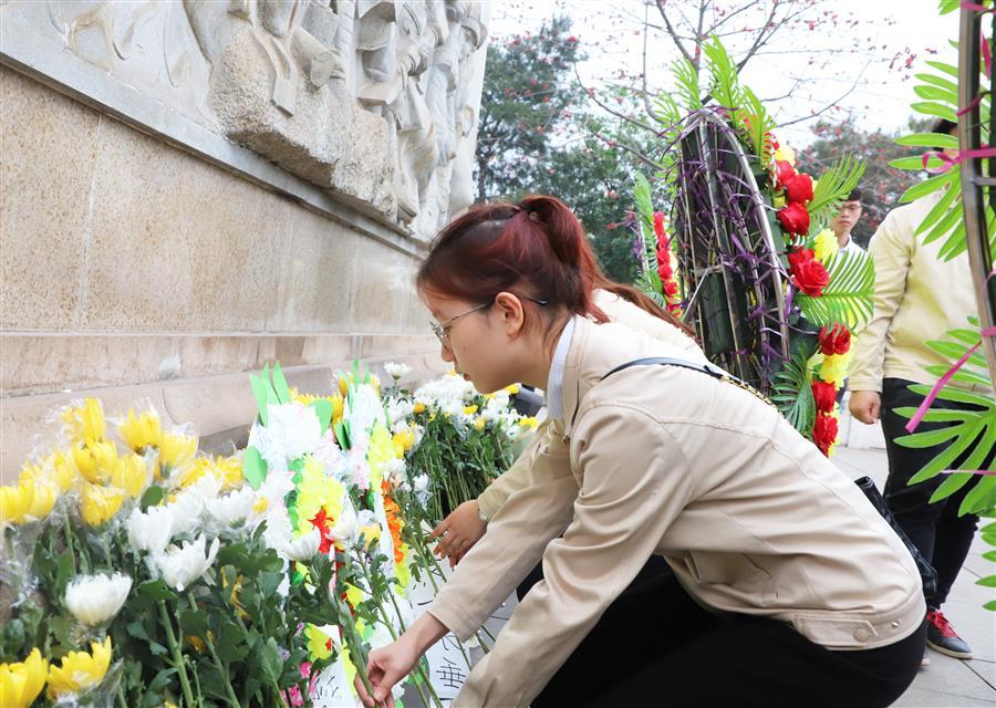 柳州烈士陵園里寧靜肅穆,團(tuán)員青年懷著崇敬的心情邁著堅(jiān)定步伐,沿著陵園臺階緩緩行進(jìn)至雄偉莊嚴(yán)的烈士紀(jì)念碑前,向革命烈士低頭默哀,緬懷先烈的豐功偉績。
